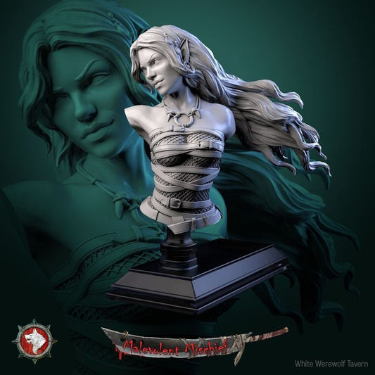 Alberta the Soul Flayer - Female Elf Warlock - Unpainted Miniature Bust