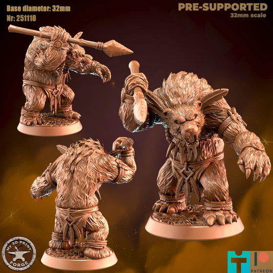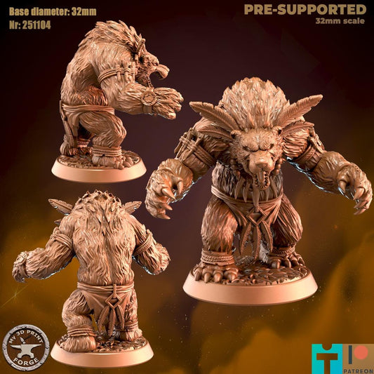 Werebear Shaman Leader, 2 Poses - 32mm Scale - Unpainted Miniature