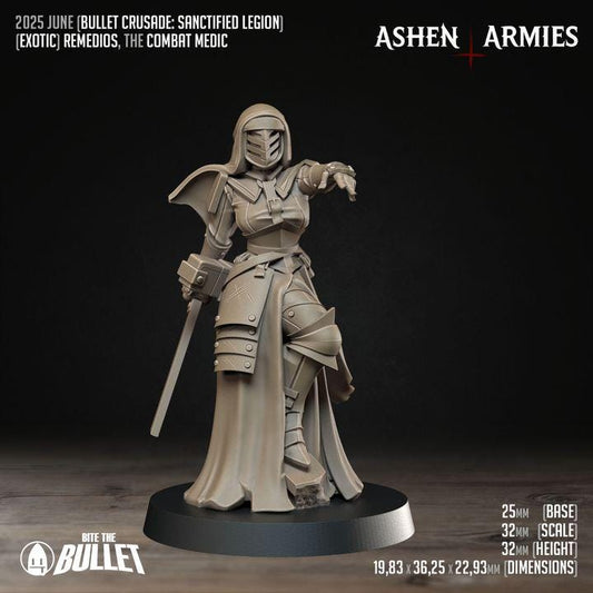 Remedios, Combat Medic - Bullet Crusade Pinup - 32mm, 35mm Scale - Unpainted Miniature