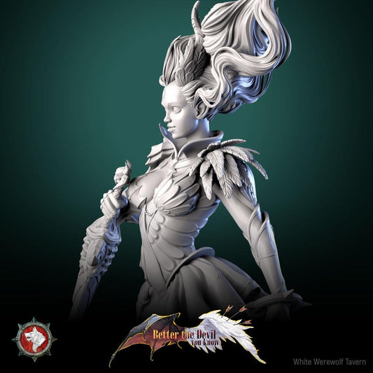 Tiefling Barbarian, Vaeryss, Champion of Asmodeus, Pinup - Infernal Legion - Unpainted Miniature