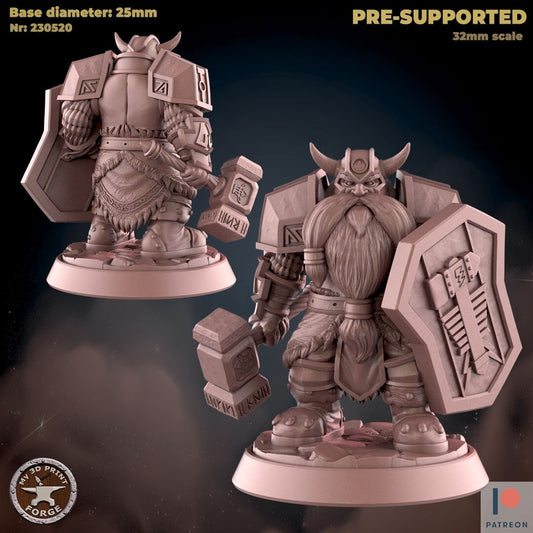 Male Dwarf Paladin - 2 Poses - Unpainted Miniature