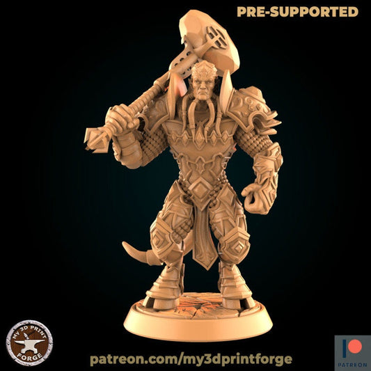 Tiefling Paladin - 32mm, 35mm Scale - Unpainted Miniature