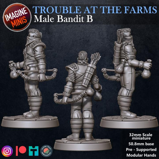 Masked Male Bandit, Pose B - Trouble At Farms Set - 32mm Scale - Unpainted Miniature for DnD, Pathfinder, Tabletop RPGs - Imagine Minis