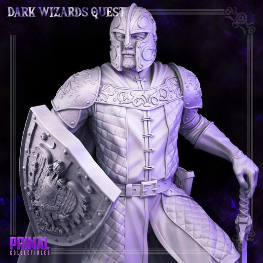 Human Knight, Sir Galahad - Masters of Dungeons Quest - 28mm, 32mm, 75mm Scale - Unpainted Miniature for DnD, Pathfinder, Tabletop RPGs