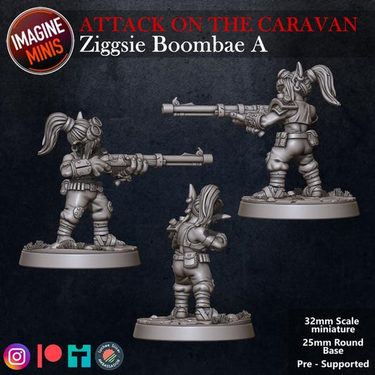 Goblin Gunslinger, Ziggsie Boombae - 32mm Scale - Unpainted Miniature