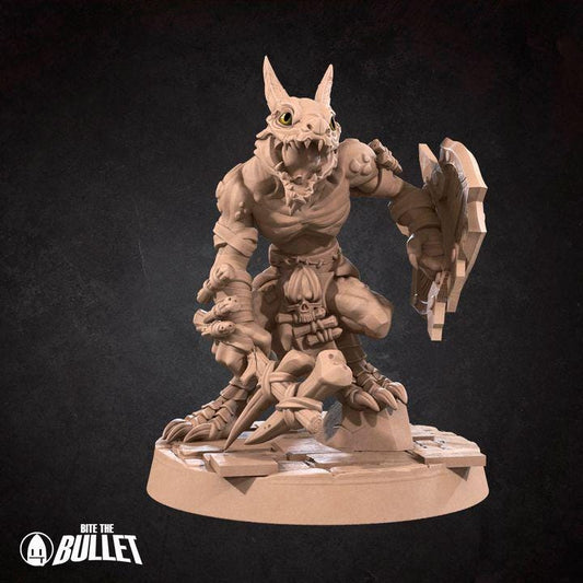 Kobold Fighter - 32mm, 35mm Scale - Unpainted Miniature for DnD, Pathfinder, Tabletop RPGs - Bite the Bullet