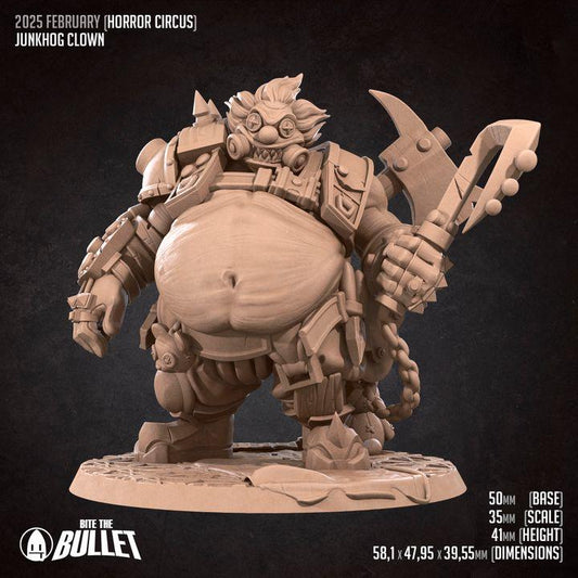 Junkhog Clown, Horror Circus - 32mm, 35mm Scale - Unpainted Miniature for DnD, Pathfinder, Tabletop RPGs - Bite the Bullet