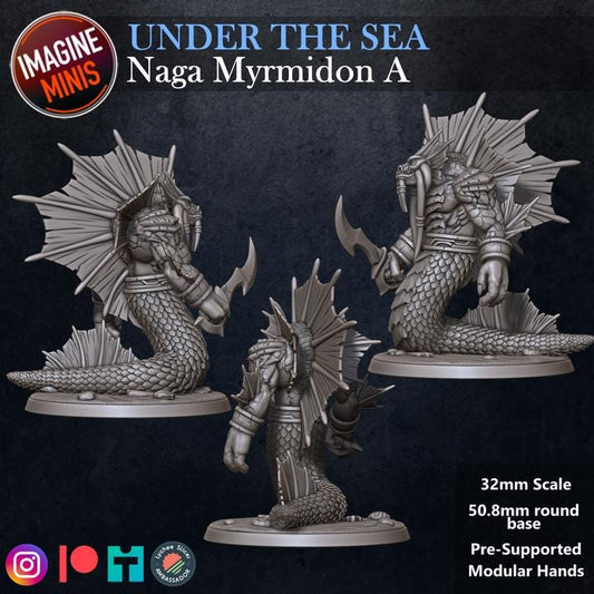 Naga Myrmidon- 32mm Scale, Large Creature - Unpainted Miniature for DnD, Pathfinder, Tabletop RPGs - My3dPrintForge