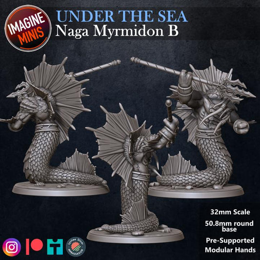 Naga Myrmidon, Naga Guard, Pose B - 32mm - Unpainted Miniature for DnD, Pathfinder, Tabletop RPGs - Imagine Minis