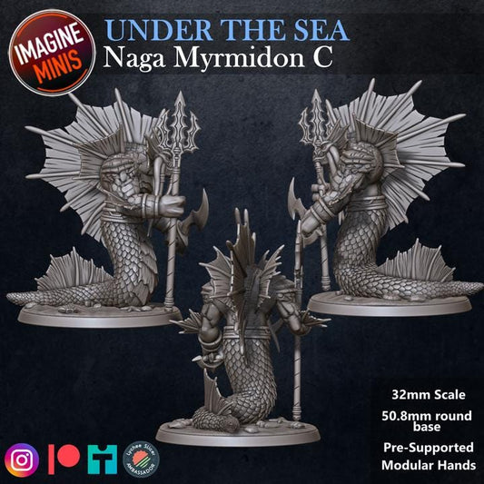 Naga Myrmidon, Naga Guard, Pose C - 32mm - Unpainted Miniature for DnD, Pathfinder, Tabletop RPGs - Imagine Minis