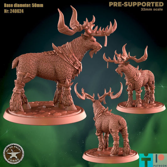 Stag - 2 Poses - Beast Shape - Druid Set - Unpainted Miniature