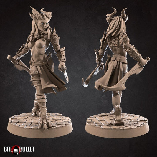 Tiefling Barbarian, Vaeryss, Champion of Asmodeus, Pinup - Infernal Legion - Unpainted Miniature