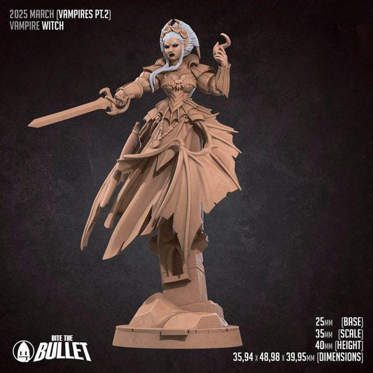 Vampire Witch - 32mm, 35mm Scale - Unpainted Miniature for DnD, Pathfinder, Tabletop RPGs - Bite the Bullet