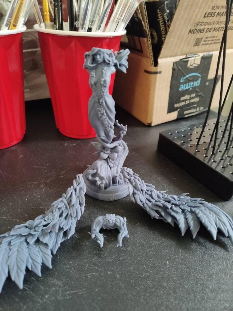 I love this Dryad, but it was really hard to glue together. With other minis, I glue them and they stay together. I've glued it multiple times, but with the slightest touch the wings fall off. I think the “nubs” to glue in are way too small. If not for that, it would be amazing.