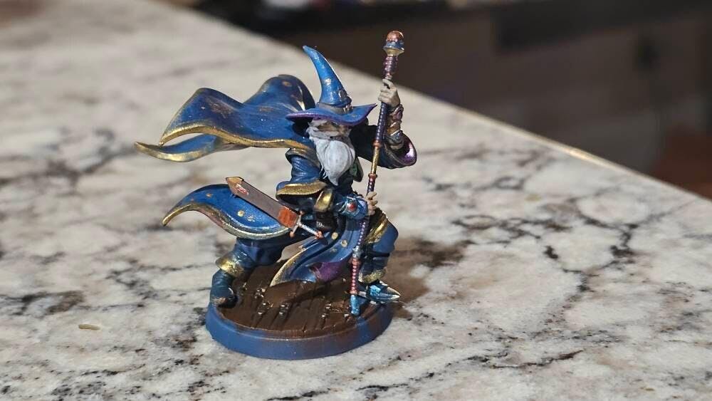 Human Wizard, old mage miniature. He would be perfect for any tabletop rpg adventure!