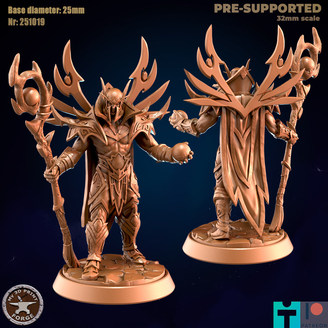 Male Elf Mage with Crested Armor - 32mm Scale - Unpainted Miniature