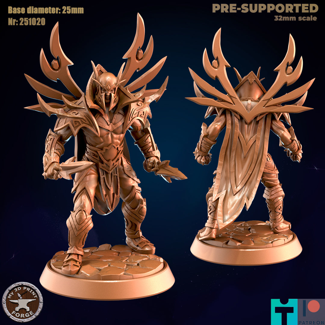 Male Elf Rogue with Crested Armor - 32mm Scale - Unpainted Miniature