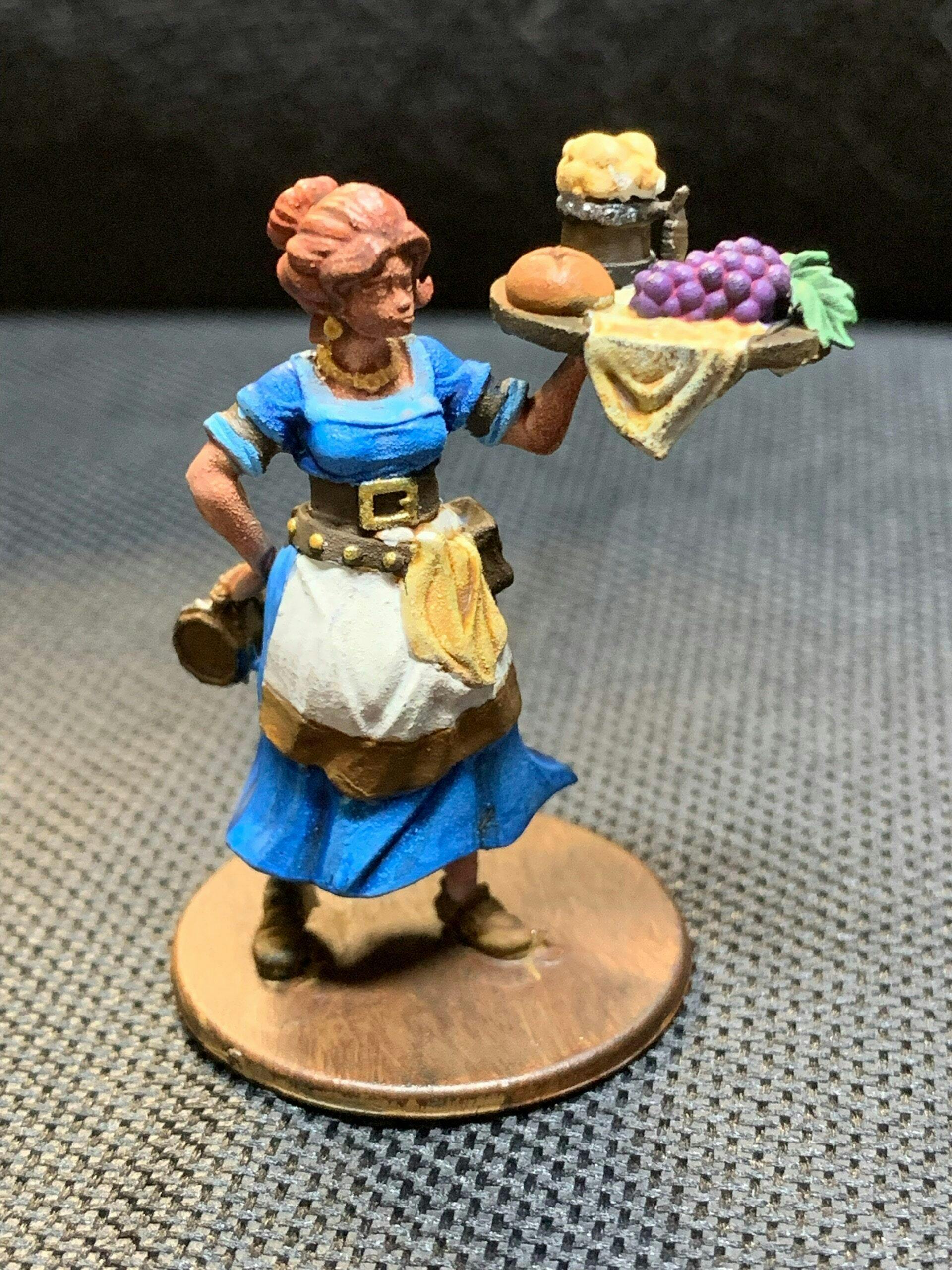 This half of the tavern set is ONLY THE PATRONS. The benches, tables, and other tavern items are sold separately. This set includes nine different patrons including: waitress, innkeeper, bard, a drunk halfling, a thief, and a mysterious man in the corner.